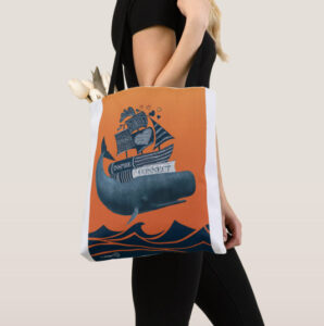 Winning design tote, In the Art of the Sea, by Marianne Kelley for this year’s Nantucket Book Festival. This design was inspired by Nathaniel Philbrick’s novel, In the Heart of the Sea.