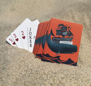 Raise the stakes on poker night with the, In the Art of the Sea, playing cards by Marianne Kelley on these playing cards; this year’s winning design for the Nantucket Book Festival. This design was inspired by Nathaniel Philbrick’s novel, In the Heart of the Sea.